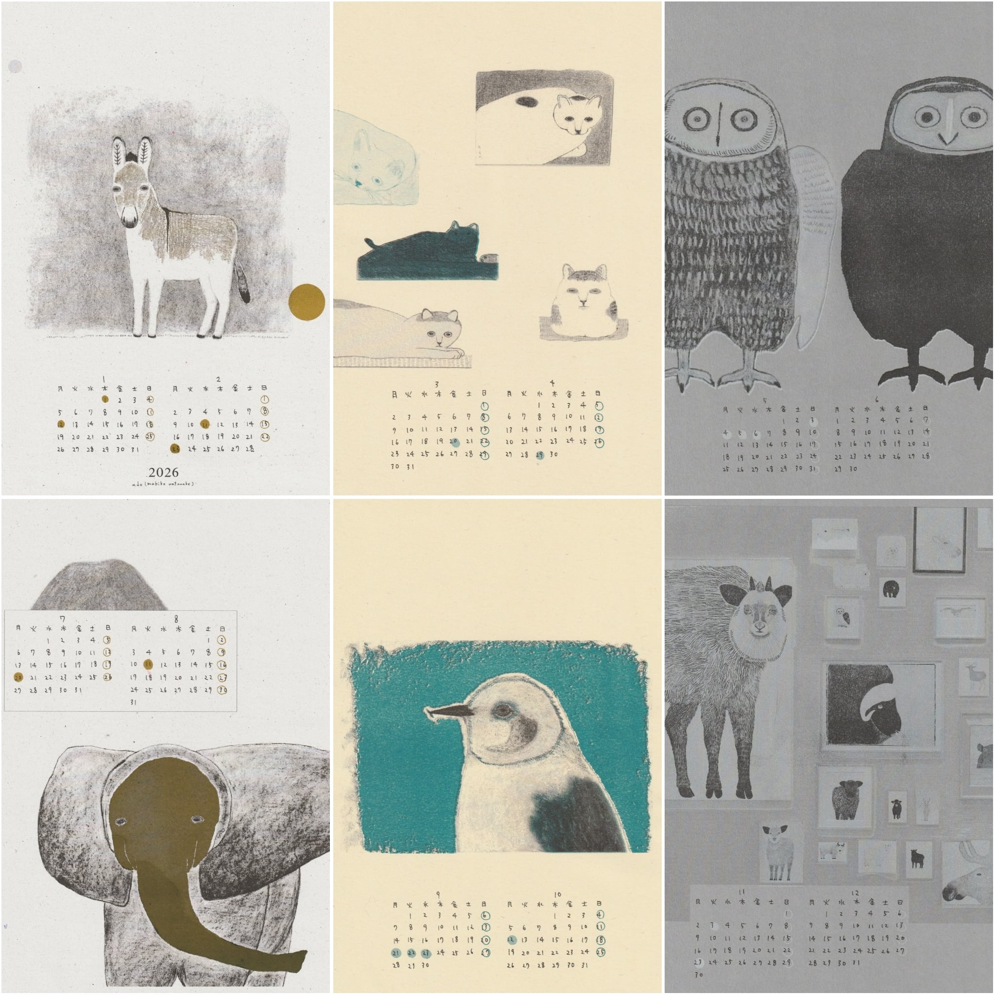 一番上は2026年の干支午年ウマ科のロバ。一年間楽しんで貰えたら幸いです。[ロバ/いえにいるネコ/フクロウ/アフリカゾウ/ヒヨドリ/いる]