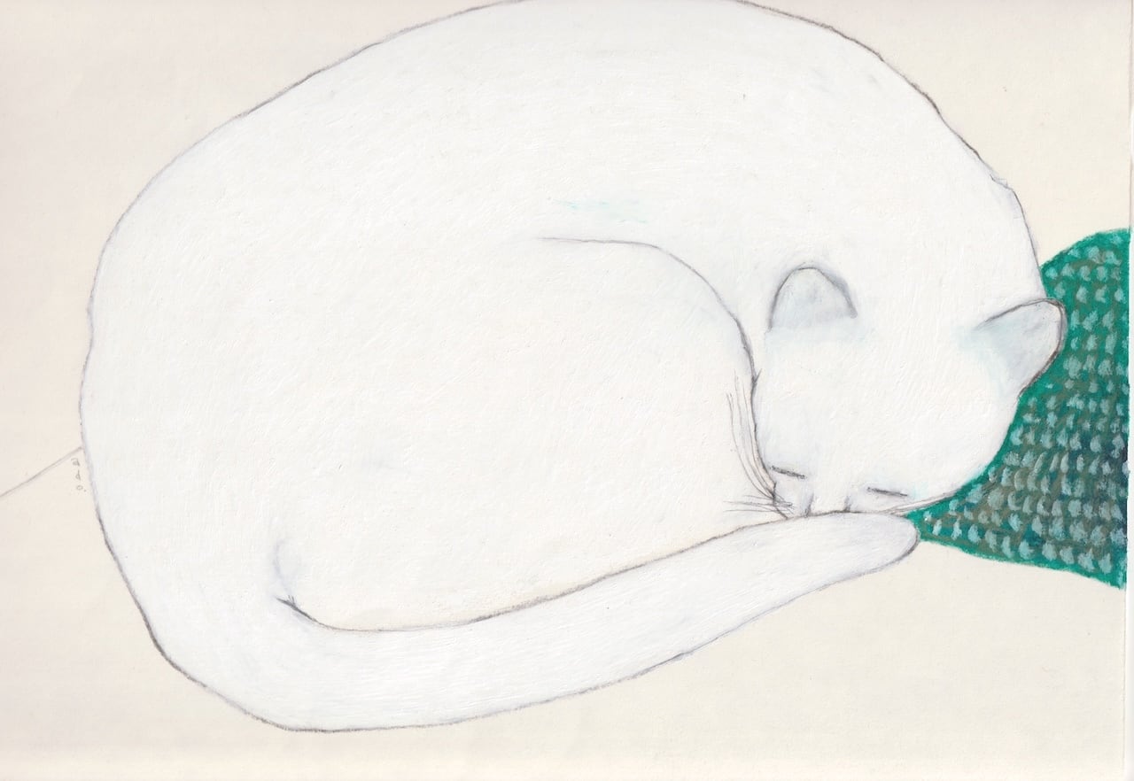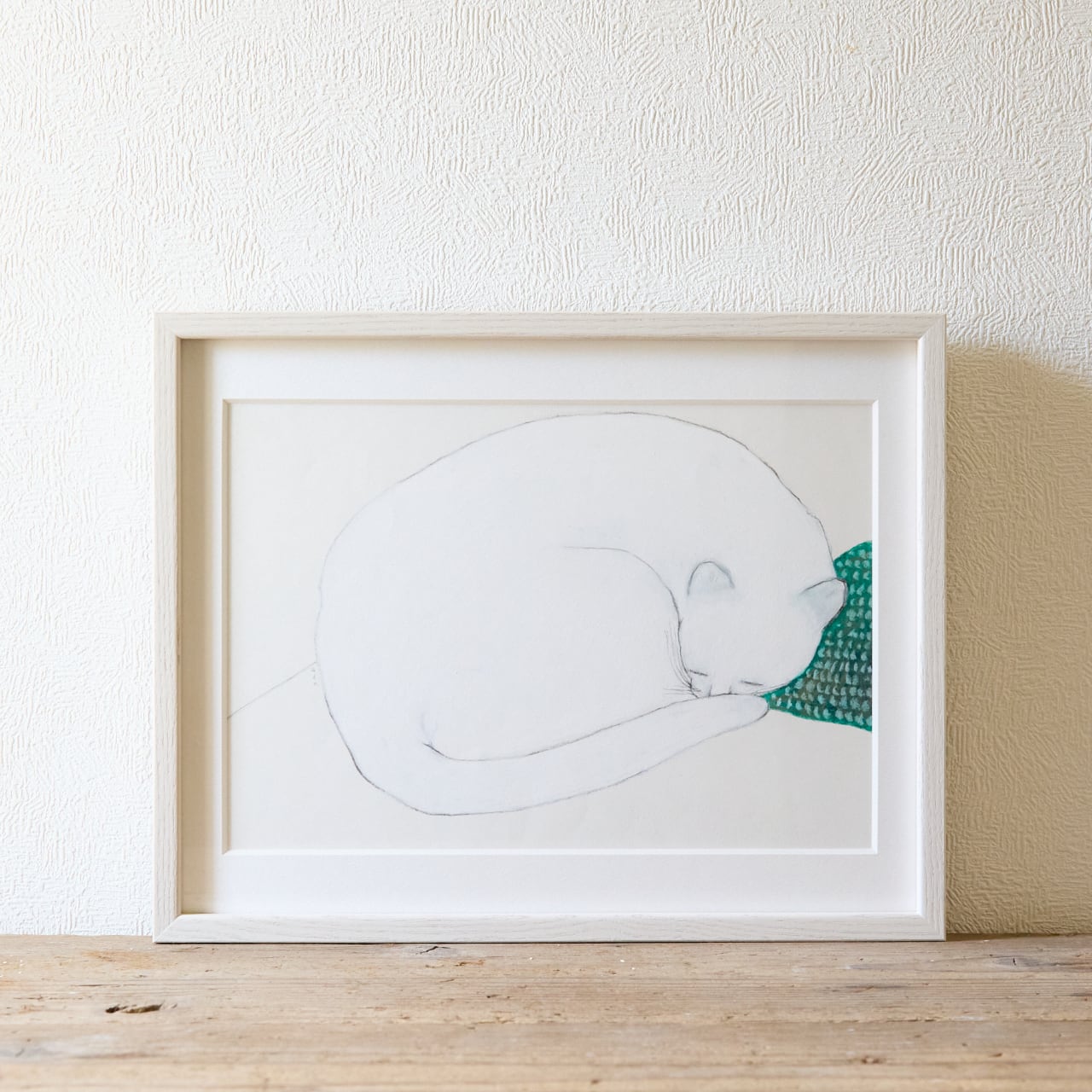 寝てるシロネコ 額入り