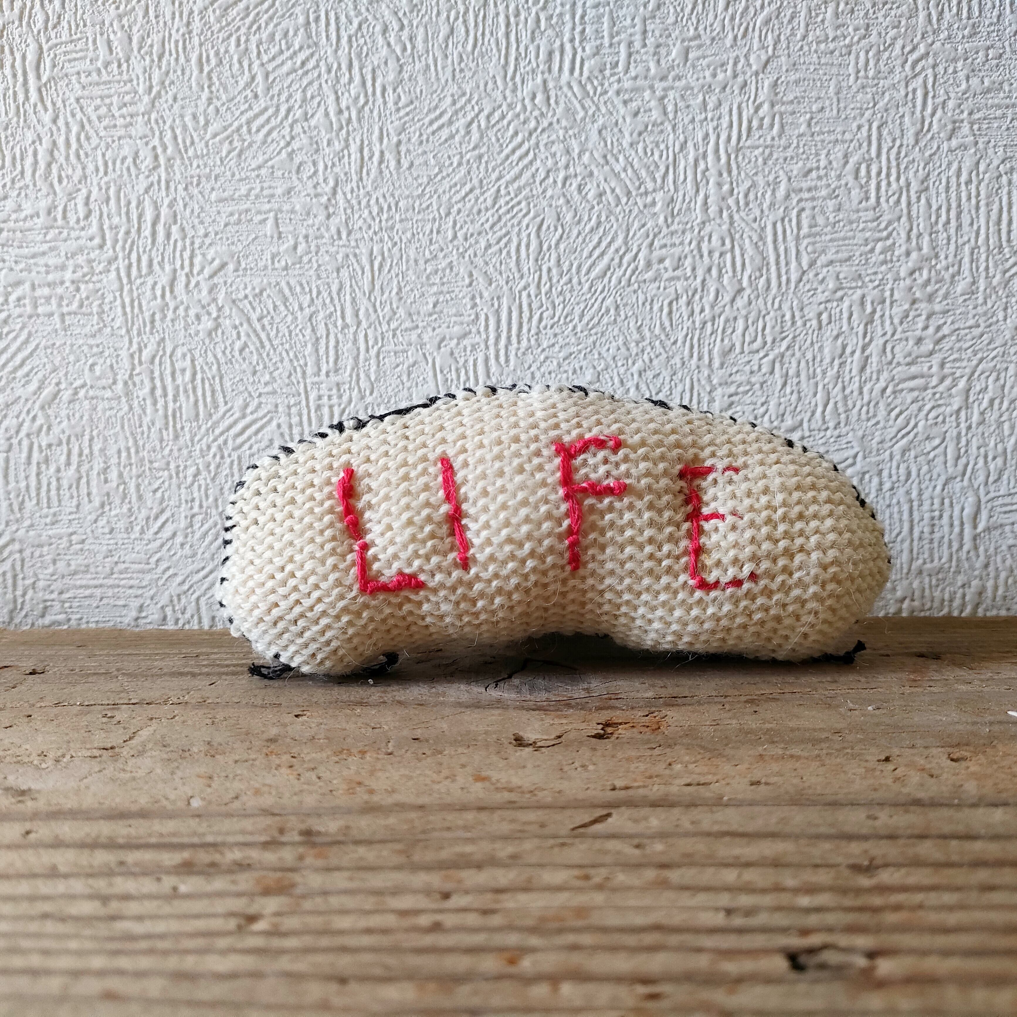 ひたすら縫ってできた生き物。縫い物下手人間が、壊れない生き物を作りたくて、ひたすら縫うことで具現化。やわらかく そっと いる 生き物。
