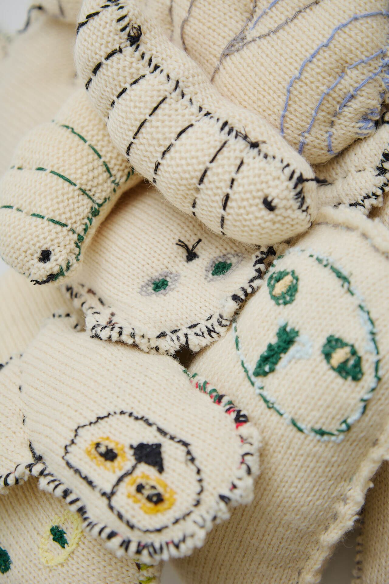 ひたすら縫ってできた生き物。縫い物下手人間が、壊れない生き物を作りたくて、ひたすら縫うことで具現化。やわらかく そっと いる 生き物。