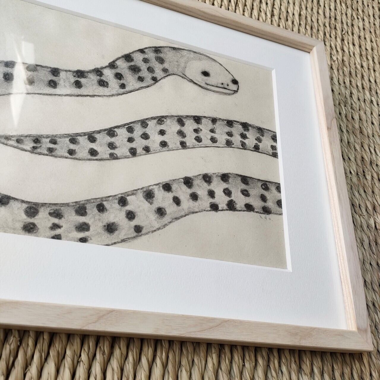 苦手な方が多いヘビ。年賀向けなので、あまりリアルになりすぎないヘビに。巳年 繁栄 再生 不老長寿 実を結ぶなどの意味合いがあるそうです。